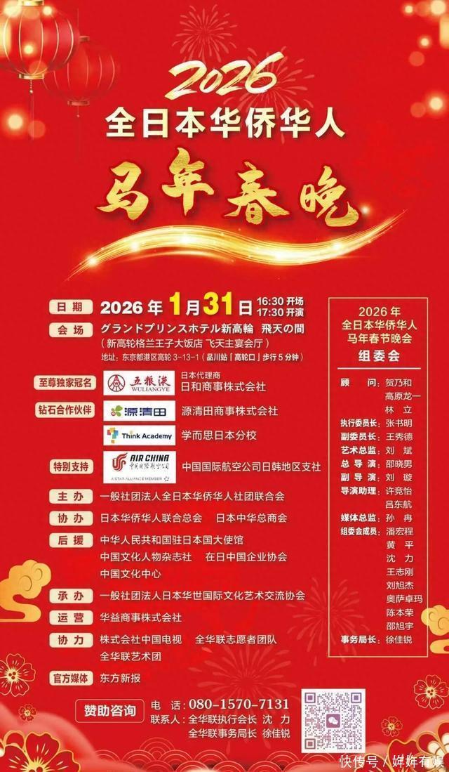 2025日,全日本华侨华人马年春晚新闻发布会在东京举行。 由全华联主办的全日本华侨华人春节晚会自首届以来,已逐渐发展成为在日华侨华人一年一度的重要文化盛事。多年来,晚会坚持以春节为核心,以团圆为情感主轴,不断丰富内容形式,吸引越来越多不同背景、不同年龄的华侨华人参与其中,让身在异国的人们在熟悉的节日氛围中找到归属感。 全日本华侨华人马年春晚各项筹备工作正在有序推进。目前,主创团队将进一步打磨节目内容和舞美设计,持续完善方案,力求在细节上体现诚意,在整体上呈现温度,给广大在日华侨华人带来“年味”和家的味道。